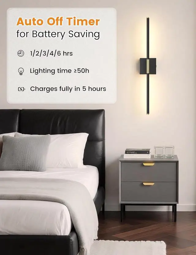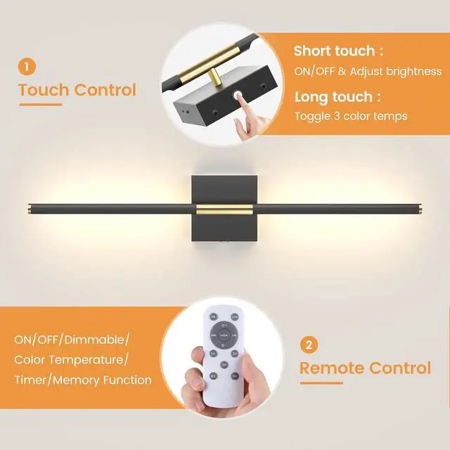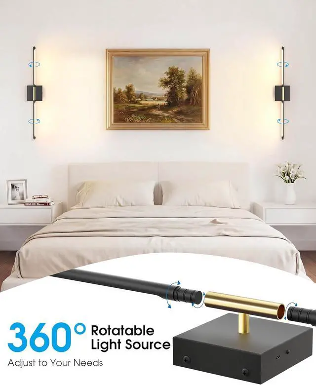 360° Ambient Glow & Versatile DecorElevate your space with 's battery operated wall sconceswhere 360° adjustable lighting meets modern sophistication. This black gold wall sconces set of 2 seamlessly blends functionality and style, ideal for TV walls, fireplaces, bedrooms, living rooms, hallways, bathrooms, staircases, fireplaces, vanity mirrors and picture displays. Illuminate every corner with customizable glow while adding a touch of contemporary elegance to your home.