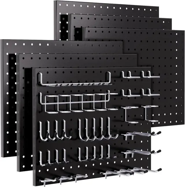 90PCS Pegboard Wall Organizer with 6 Pack Metal Pegboard Panels and 1/4 Inch Pegboard Hooks