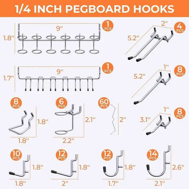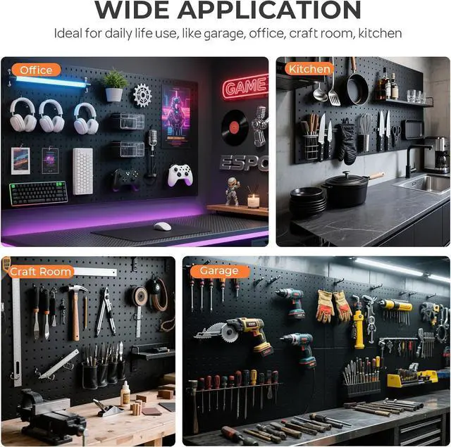 WIDE APPLICATION: This peg board organizer is ideal for storage solutions on a wide range of garage, workbench, workshop, kitchen, shop, school, tool sheds, factory, or warehouse. And the pegboard tool holders could be arranged in a compact style, save more space and get effortless accessible for a variety of small hardware or tool