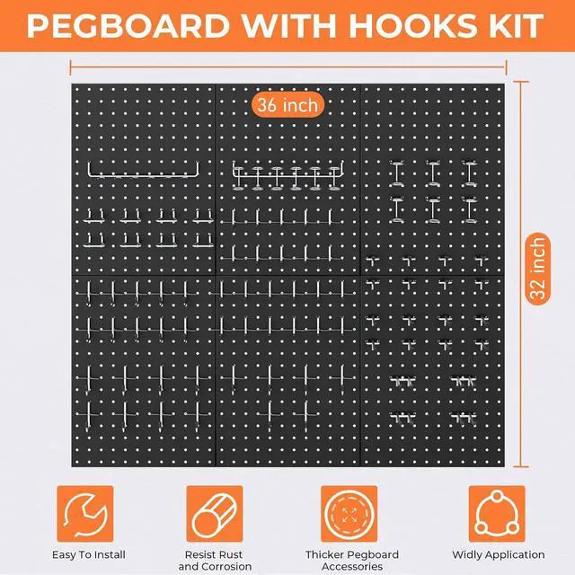 EASY TO INSTALL: There are mounting hardware and installation guide included in package to have a clear understanding of our garage pegboard organization, all you need is an electric drill and a level to make sure they are lined up for mounting on into the wall