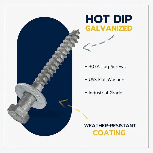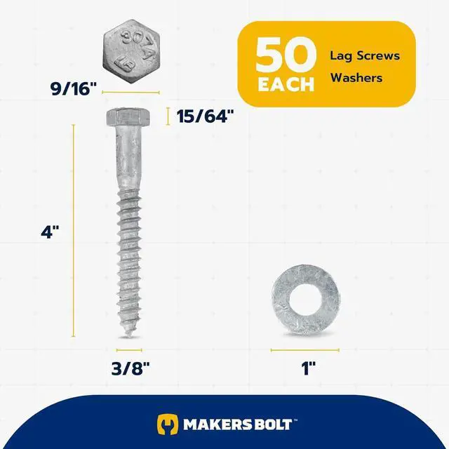 3/8 x 4 (50 Pack) Lag Screw Kit, 50 Screws and 50 washers, Hot Dip Galvanized, Meets ASME B18.2.1 Industrial/Commercial Grade by