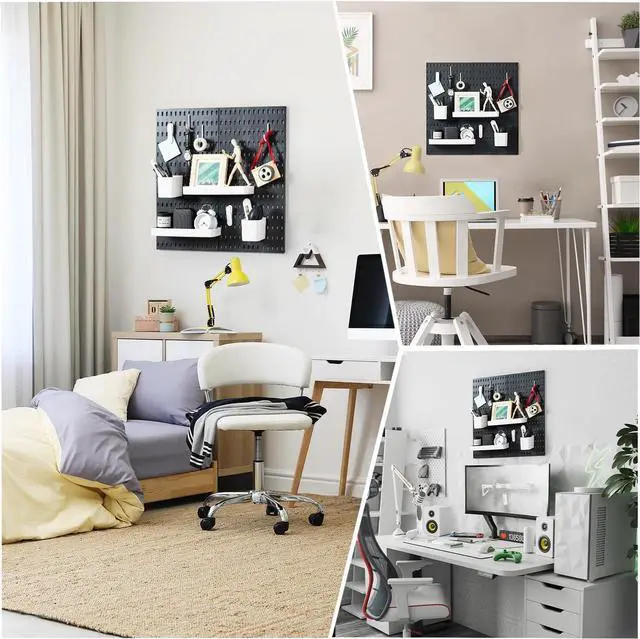 Creative Combination - With our wall board organizer, you can set your pegboards up in a variety of ways for different needs. The combination set contains 4 pegboards and 17 pegboard accessories, which allows you to create your own storage style. By arrange the 4 panel pegboards diffrently, you can fully optimize wall space.
