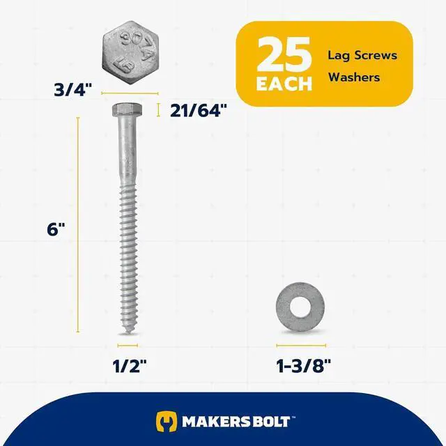 • Kit includes 25 Grade 307A lag bolts and 25 USS flat washers (outside diameter 1-3/8")