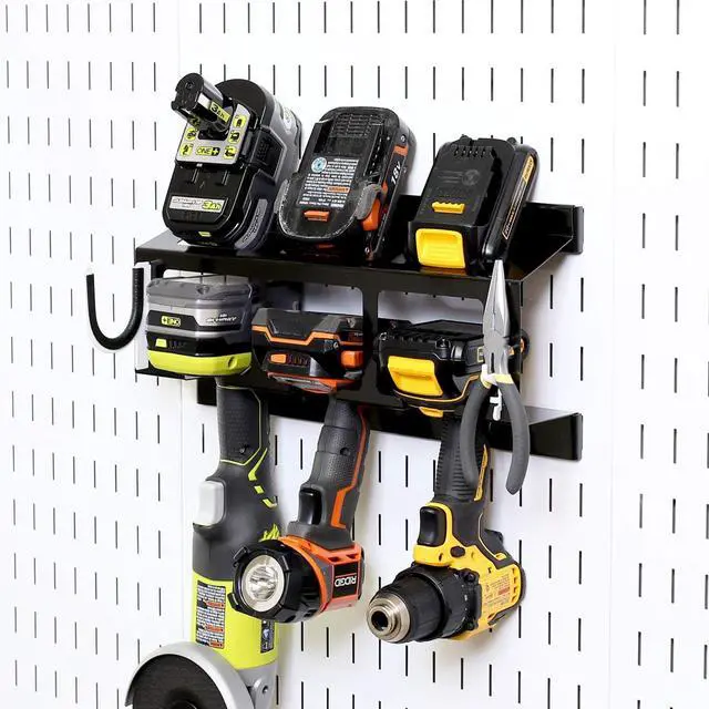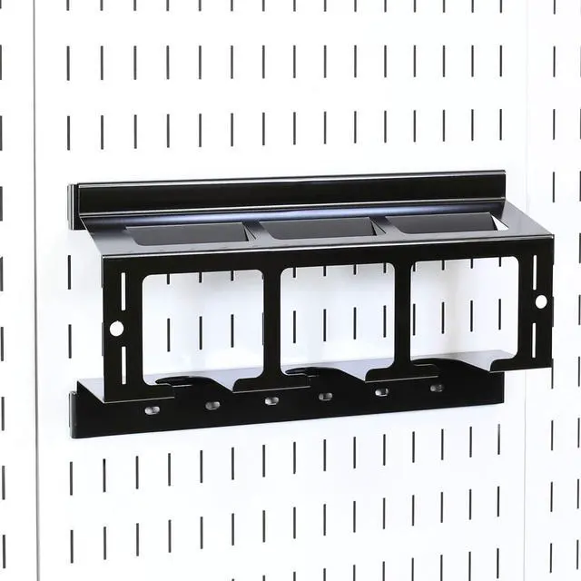 Includes: (1) Slotted Metal Pegboard Drill Holder Storage Rack Assembly for Attachment to Pegboard by. Drill Rack Holder Power Tool Organizer Accommodates 3 Drills and Batteries. Slotted Metal Pegboard Drill Rack Holders are not for use with 's 3in Tall Pegboard Strips. Power Tool Drill Holder is ONLY compatible with Pegboard by and Slotted Tool Board Panels.
