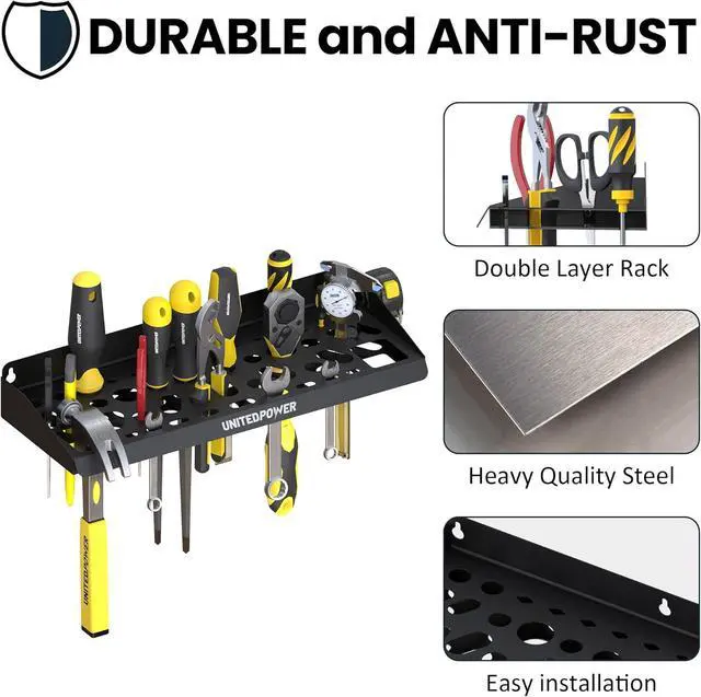 Durable Material: The storage organizer made of heavy metal with powder coated finish for lasting durability, double-layer design to better fixing tools