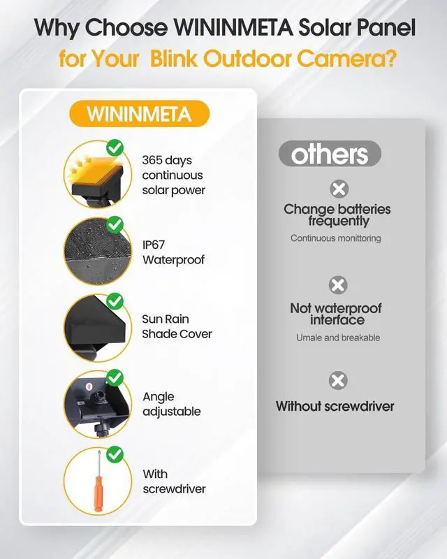 Simple, Adjustable InstallationSkip messy wires and complex setups. The blink outdoor 4 solar panel includes an adjustable ball head for flexible positioning of both the panel and camera. Easily achieve the best sun exposure without hassle.