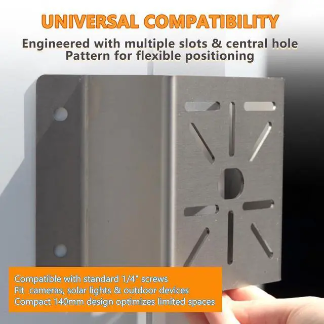 Universal Compatibility: Engineered with multiple slots & central hole pattern for flexible positioning; compatible with standard 1/4" screws to fit for Arlo/Ring/Reo-link cameras, solar lights & outdoor devices. Compact 140mm design optimizes limited spaces