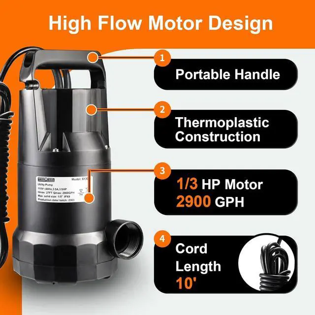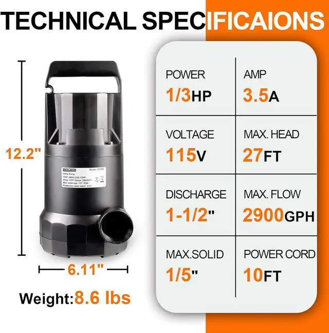 Safety GuaranteeBefore using the utility pump submersible, submerge the pump into the water at an tilt angle to allow any tapped air to escape. For any question, please do not hesitate to contact our service team, we are here to help for any concerns within 24 hours.