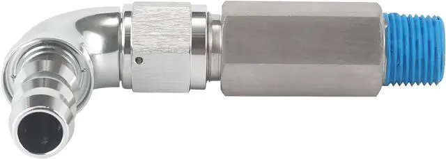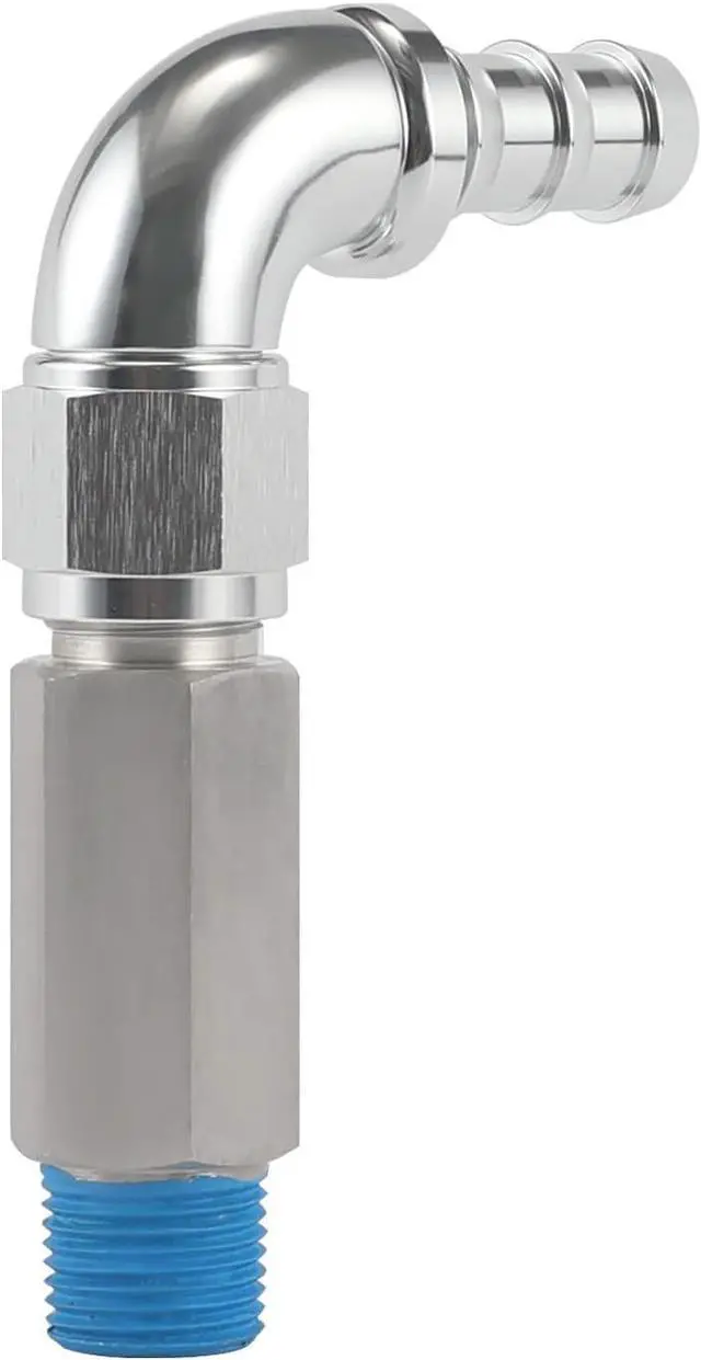 The threaded adapter design allows you to use your own thread sealant or tape for a customized, The blue coating is intended to enhance the sealing performance, and using sealing tape will improve the sealing effect even more, leak-free fit. The 90° barb fitting ensures a secure connection and simplifies installation.