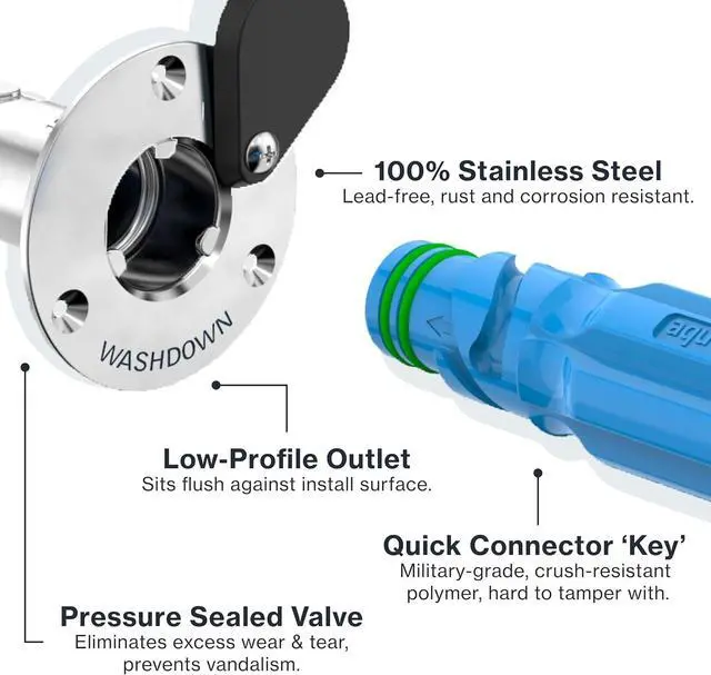 Professional Grade Materials: Manufactured with 100% lead-free, corrosion-resistant 316L stainless steel. Complemented by crush-proof, military-grade acetal polymer. Upgrade boat hose washdown to a more reliable, long-lasting solution.