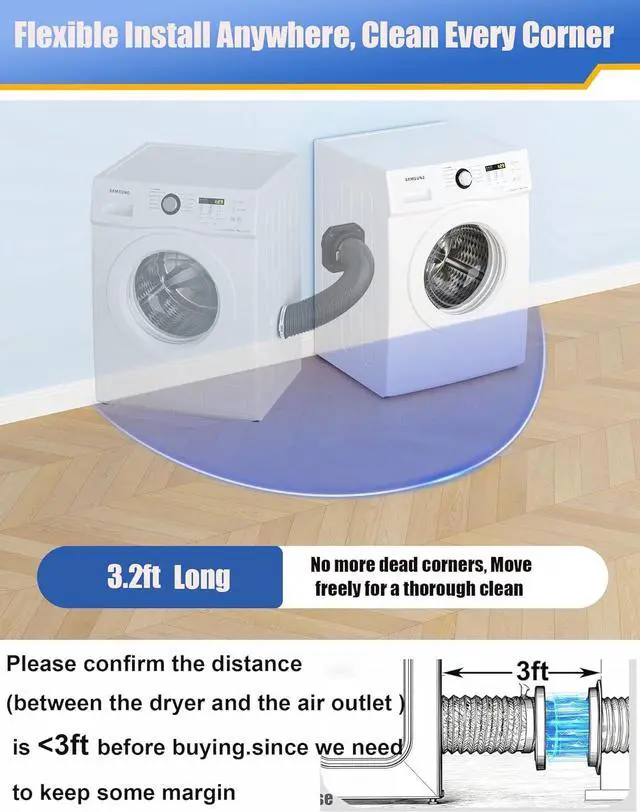 Safety & Durability: Flame-resistant, sturdy housing, stainless steel clamps (heat/corrosion/wear-resistant). Optimizes airflow, saves energy, and boosts dryer efficiency.