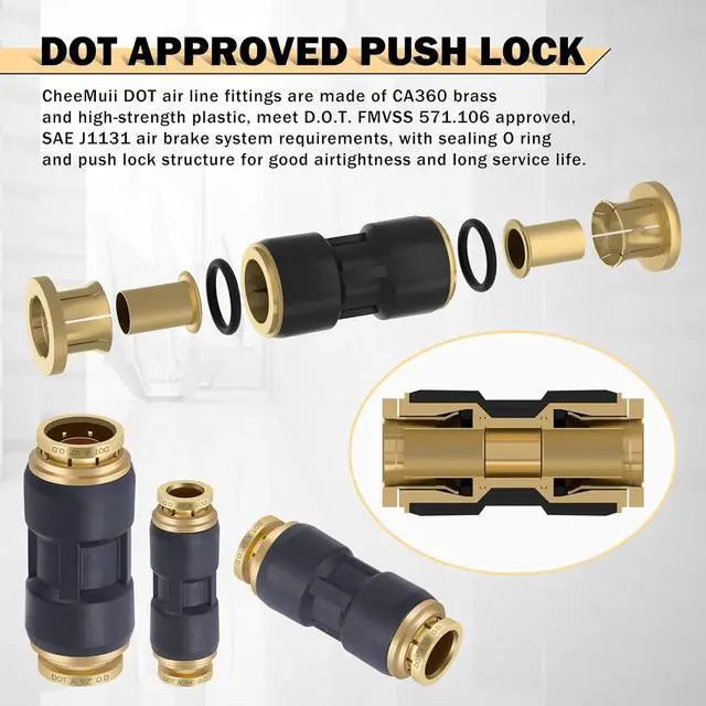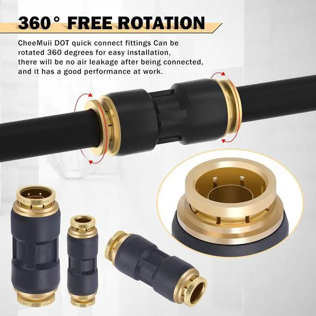 WIDE APPLICATION: The DOT air brake fittings can be used with air suspension systems, copper tubing in airline brake systems, perfect for truck /RV repair air line leak, also ideal for industrial workshops, towing machine hose connection, etc