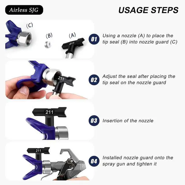 Wide Range of Uses: These airless sprayer nozzles are compatible with most mainstream airless spray guns, making them suitable for various applications such as home decoration, painting, and industrial fine paint decoration. They facilitate surface preparation and post-coating cleaning, making your painting tasks easier and faster.