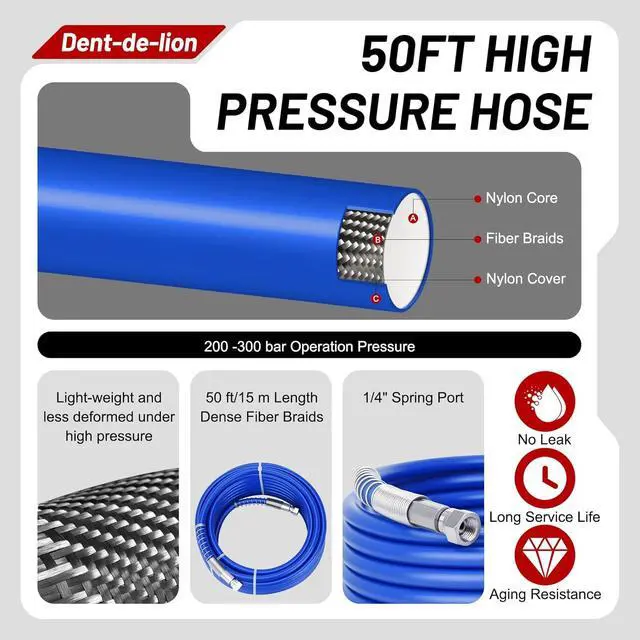 Materials: Airless paint spray gun and other accessories are made of high quality steel and hard metal materials, high pressure hose is made of polymer fibre