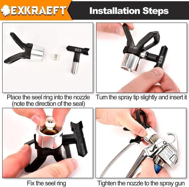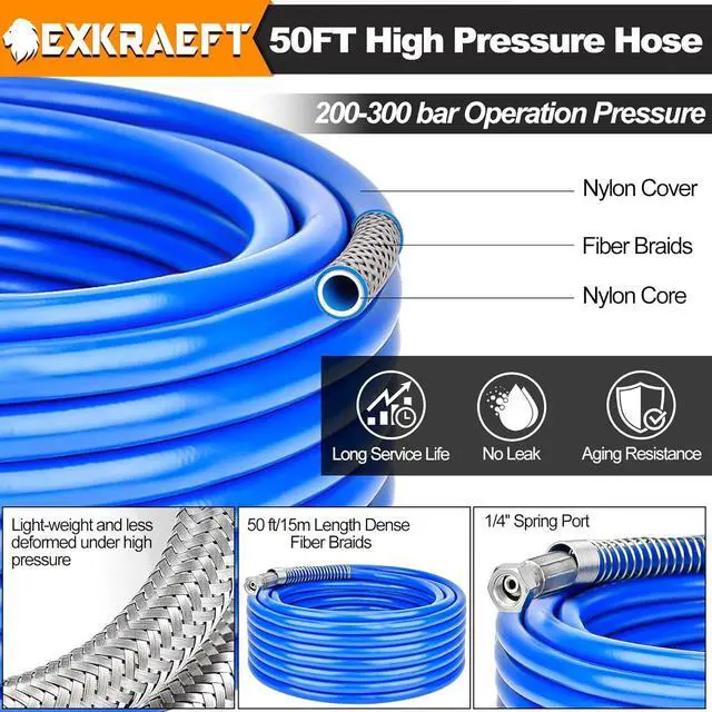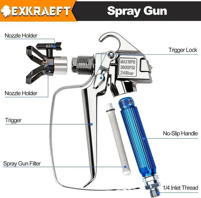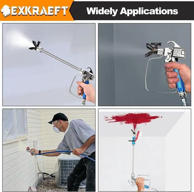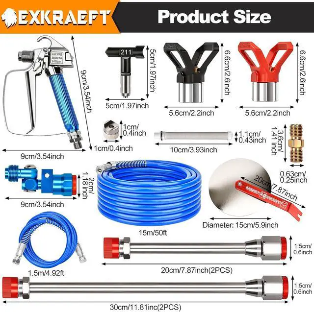 Wide Compatibility: This airless paint sprayer gun kit is designed to fit most airless paint sprayers, and includes a 50-foot hose along with a 4.92 -foot hose to suit different working areas. With six nozzle styles and four extension rod sizes, it supports a variety of spraying applications. The nozzle seat and spray gun filter help reduce paint splatter and drips, while filtering out impurities to prevent clogging.