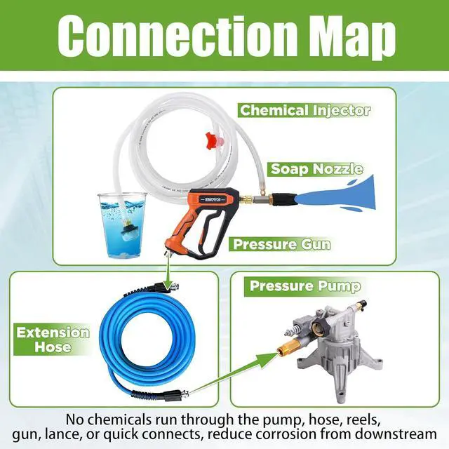 Downstream Injection Nozzle Kit can be widely used to wash Car, Motorcycle, Floors, Windows, Driveways, Roofs, Siding, Pool and so on.