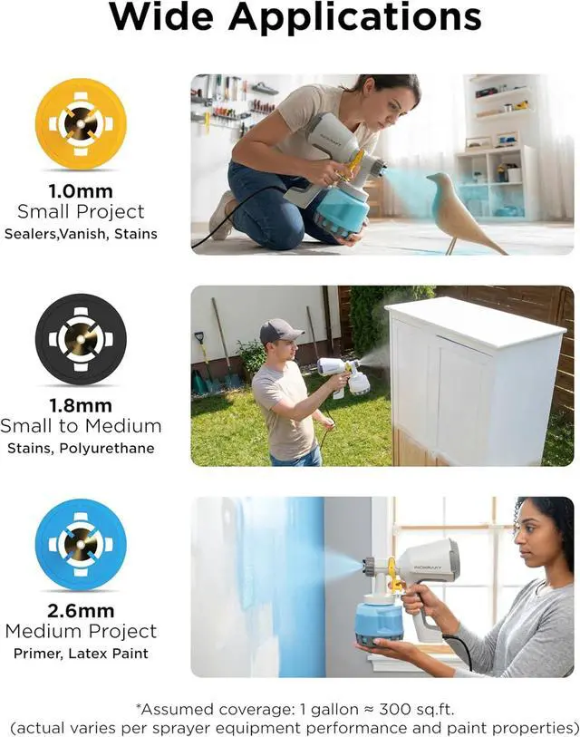 Versatile DIY Solution: This electric paint sprayer is an ideal choice for DIY novices. It comes equipped with three brass nozzles ( 1.0, 1.8, 2.6 mm), 6.56 ft power cord making it suitable for fine - to - medium sized paint sprayer for furniture and paint guns for house painting projects. Compatible with latex, water - based paints, and stains, it's a go-to for various coating needs.