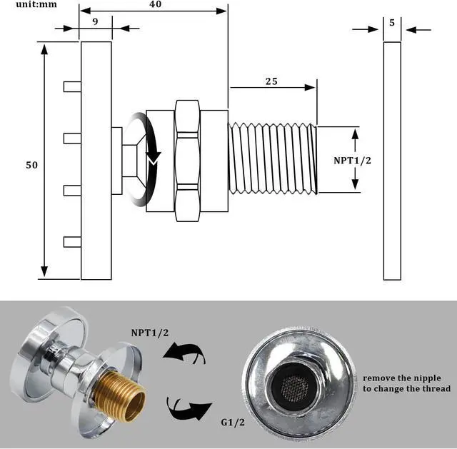CONCEALED INSTALLATION: Connect size NPT1/2, Easy to Install. Fits Standard American.