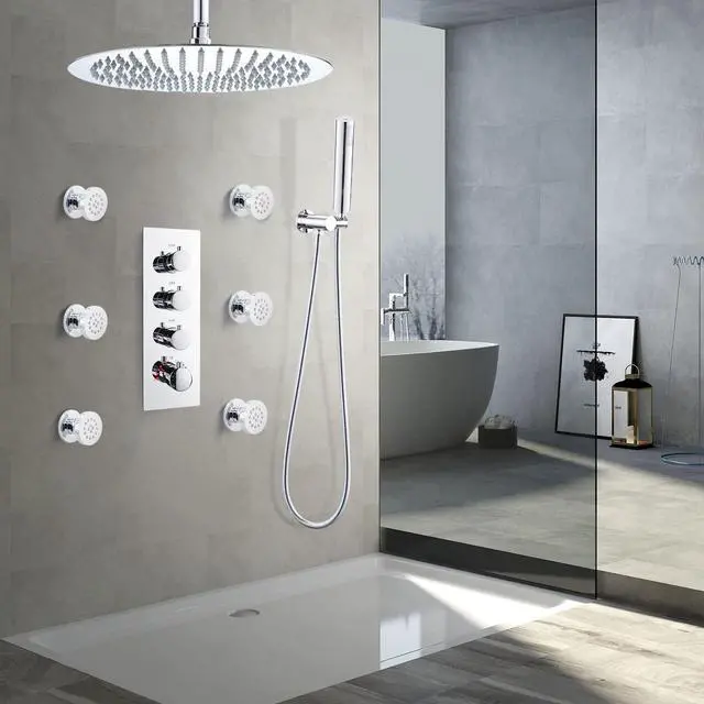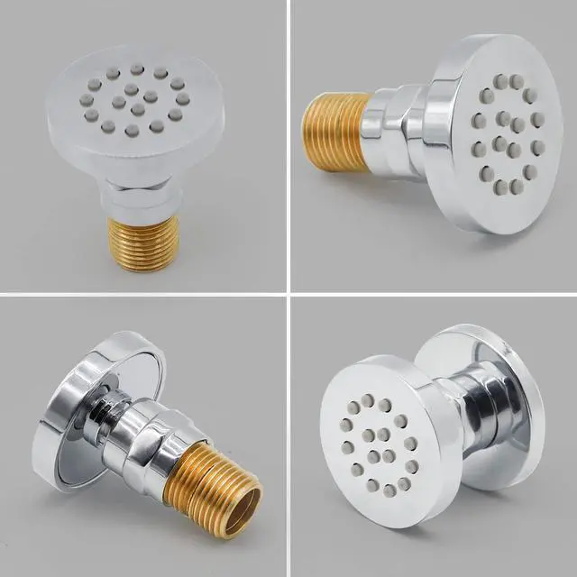 SIZE: 2inch sprayface. (Warm notice: Please don't open too big on the wall in case you won't cover the hole. ) INCLUDING: 6 body spray jets combination, spa like bathroom with casual bath hardware accessories.