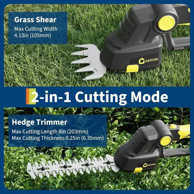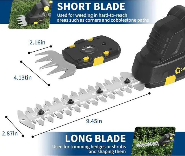 Portable, Durable DesignThis battery powered cordless hedge trimmer is easy to operate and can be maneuvered with one hand. The ergonomic handle provides a comfortable, secure grip, while its lightweight design makes it portable and cordlessperfect for various small gardening tasks. The steel blades maintain sharp, long-lasting cutting performance and can be cleaned after use.