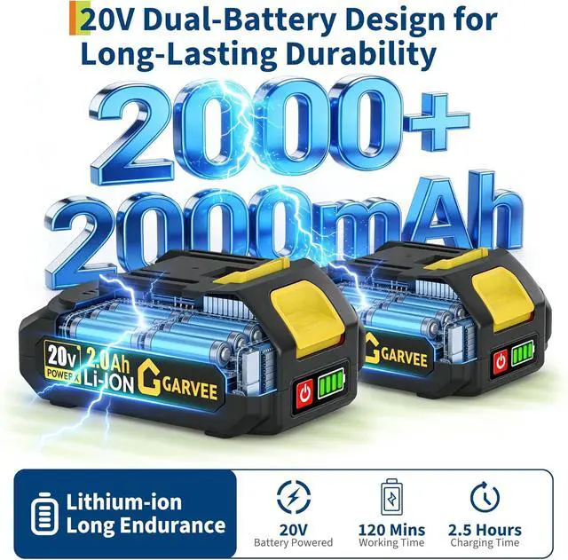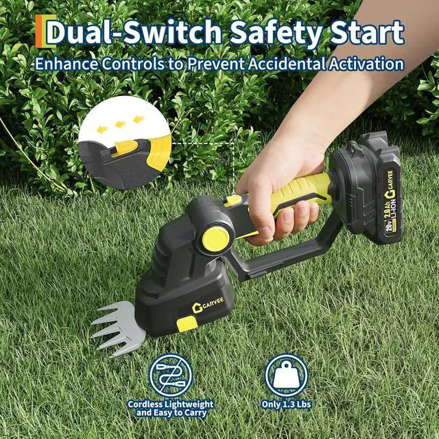 Rechargeable Battery with Power IndicatorThe handheld electric hedge trimmer is powered by a removable 20V 2000mAh lithium-ion battery, charging in just 2.5 hours. Equipped with two batteries, it extends runtime to approximately 120 minutes. The power indicator helps monitor battery levels, ensuring uninterrupted power for trimming tasks.