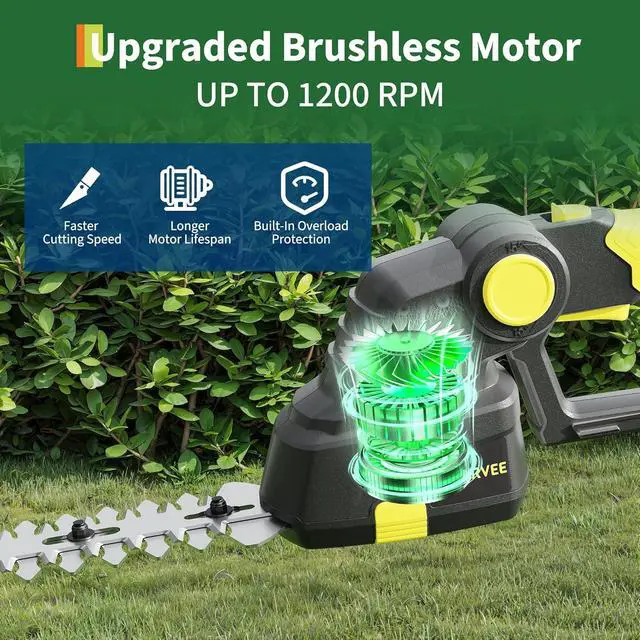 Adjustable Angle & High-Efficiency MotorThe cordless hedge trimmers with battery feature an adjustable cutting head offering three angle settings: 15°, 30°, and 45°. This enables flexible and comfortable trimming in tight spaces, reducing strain on your back and shoulders. The high-power motor delivers 1200 RPM no-load speed, optimizing cutting performance for easier and more efficient lawn care.