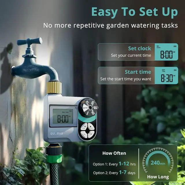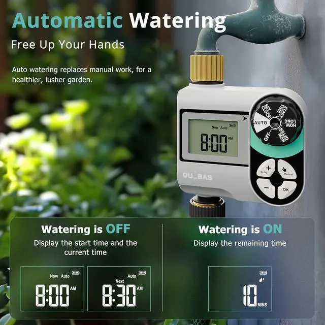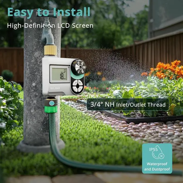 Waterproof LCD Screen Display for Effortless Operation & Monitoring: Navigate all functions on the clear digital LCD screen. The intuitive interface makes programming easy for both novice gardeners and experienced users, providing at-a-glance status updates