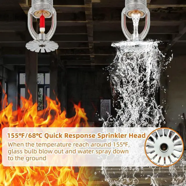 6pc Fire Sprinkler Head Pendent Type, 155 Fire Sprinkler Heads 1/2" Inch Thread 68°C Quick Response Water Spray Down 1/2" NPT for Home/Commericial/Workshop/Residential Building (Pendent Type) (6)