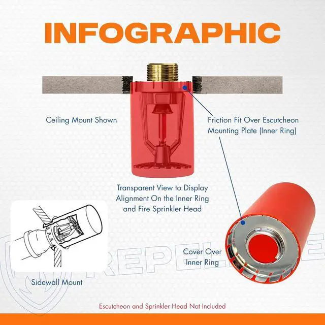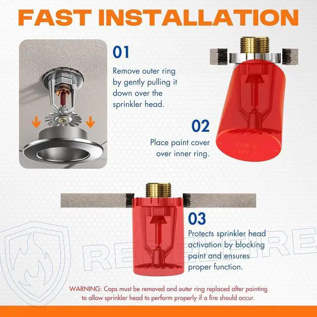 WARNING: Caps must be removed and outer ring of escutcheon replaced after painting to allow sprinkler head to perform properly if a fire should occur.