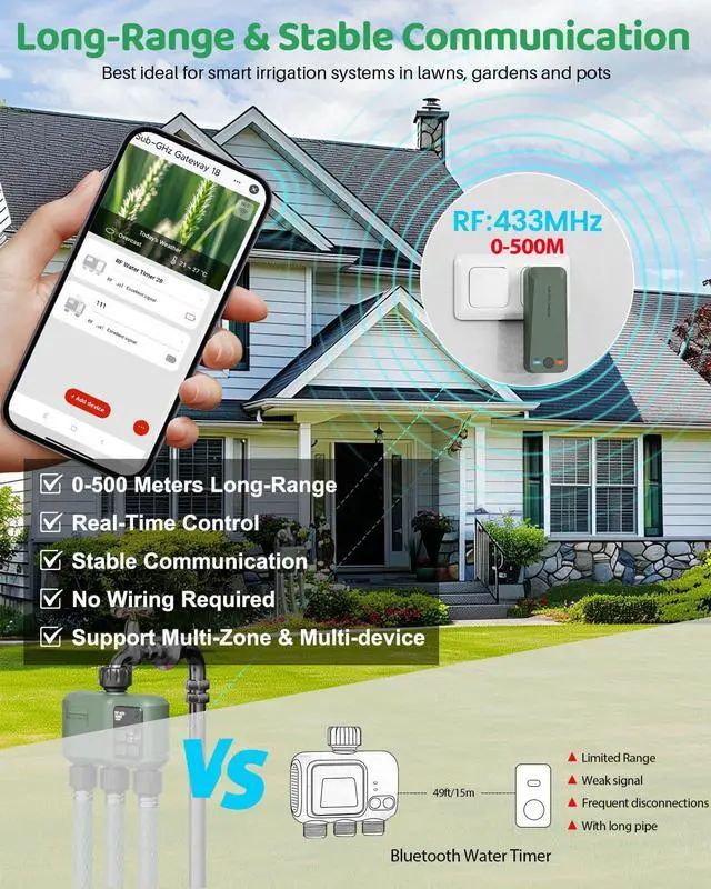 [Leakproof & Durable WiFi Sprinkler Controller] Metal connectors + aluminum filter prevent leaks. IP55 waterproof rating withstands Adverse outdoor weather conditions. Built to last 5x longer than plastic timers!