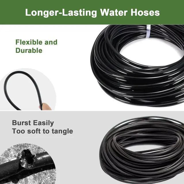Water-Saving Adjustable Nozzles for Precise ControlAdjustable emitters for easy installation and efficient watering with no leaks. Customize your watering with adjustable nozzles that allow control of water output for different plants and areas. This precise control ensures each garden section gets the right water amount, helping conserve water and promote healthier plants.