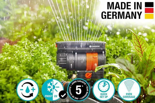 The ZoomMaxx Oscillating Sprinkler works to achieve even and precise lawn watering on areas upto 2300 sq ft. The watering range can be adjusted between 10 feet and 60 feet and the watering width can be set at a maximum of 40 feet. Made in Germany, using durable materials, this sprinkler can be relied on for a high standard of performance. This oscillating sprinkler is also able to perform well in a number of different settings, to suit your personal watering needs. Perfect for vegetable and flower patches. Based in Ulm/Germany, is THE brand for millions of home and garden owners worldwide when it comes to garden care. That is because offers a complete range of all that is required watering systems, lawn care, robotics, tree and shrub care, garden tools, soil cultivation and city gardening. Today provides quality garden tools in more than 80 countries all over the world.