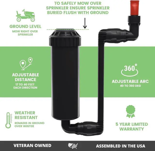 • Pops up with water pressure and automatically drops down when water's off so you can mow right over it