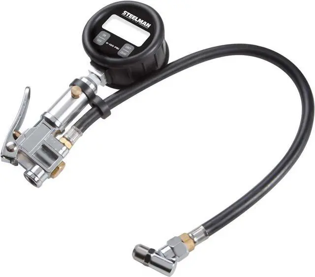 High Accuracy Digital Gauge Tire Inflator, 0-100 psi, Easy-Read LCD Screen, Displays Measurements in psi, Bar, kPa, or kg(f)/cm2, 18-Inch Hose, Protective Casing, Battery Included