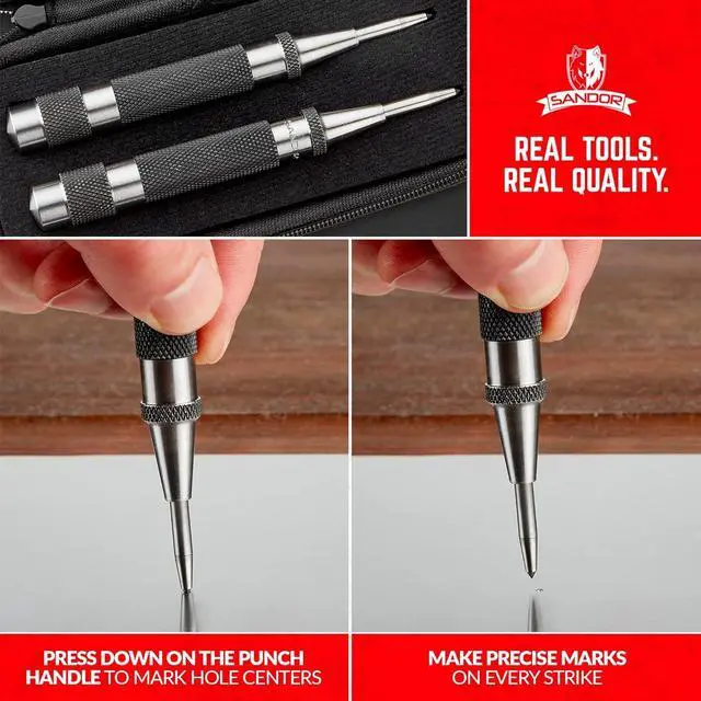 ADJUSTABLE TENSION: The Tool Automatic center punch forms a large enough dimple to "guide" the tip of the drill. For lighter marks simply release some tension by unscrewing the end cap. When fully unassembled the point can be removed for sharpening or replacement