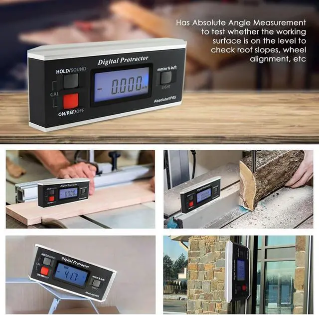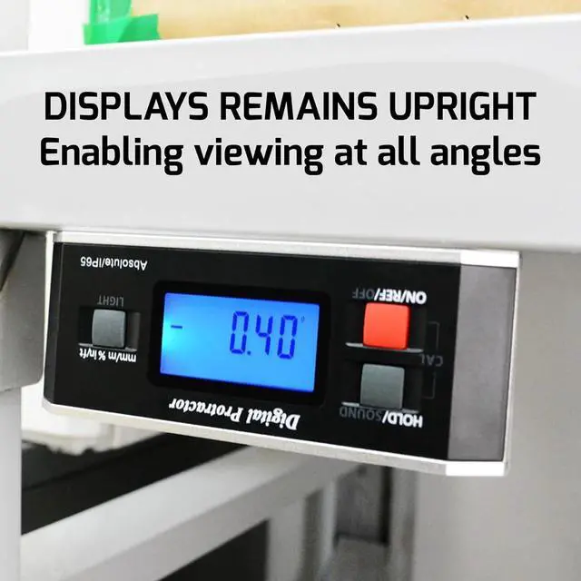 Fast, Accurate, and DurableV-groove base plate with strong magnets for stability. Full range 360° measurement in horizontal and vertical planes. Fast and accurate readings with 0.1 ° accuracy at 0° and 90°. Factory calibrated and powered by included AAA batteries.