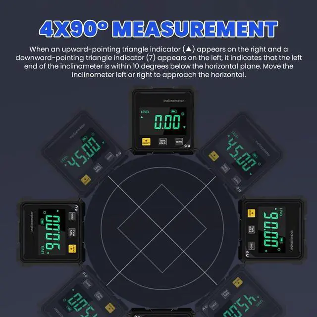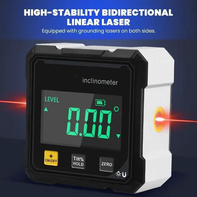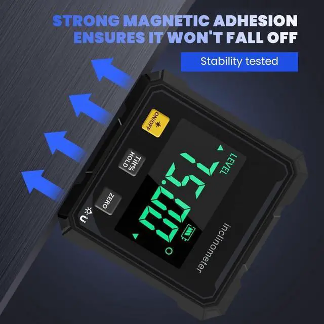 Durable & Easy to UseRugged housing resists daily impacts and wear. Simple button layout ensures quick operation: short press to power on, long press to power off, and ZERO button for fast angle reset and calibration.