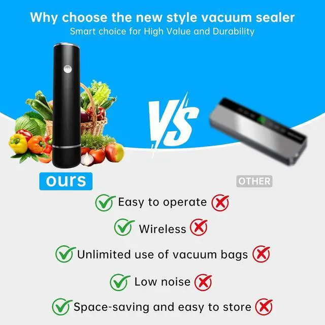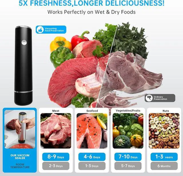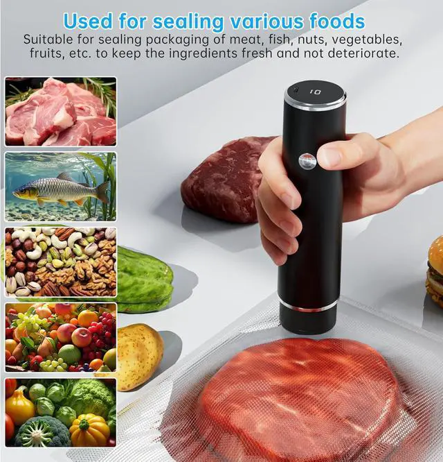 Extended Battery Life 2x Capacity for Longer UseOur vacuum sealer comes with a built-in high-capacity lithium battery that lasts twice as long as most competing models. Youll enjoy extended usage time on a single chargeideal for large batch sealing, camping, or travel. With superior energy efficiency, this vacuum sealer for food ensures powerful performance and reliability, anytime and anywhere.