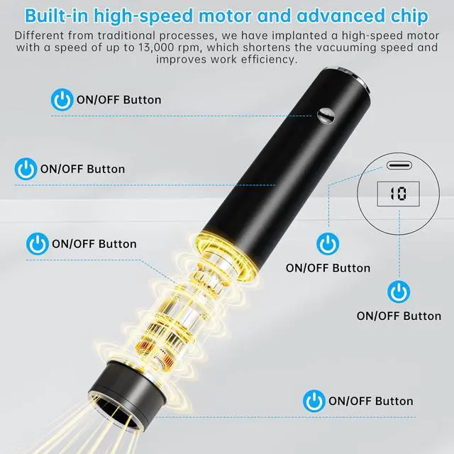 Real-Time Battery Indicator via Digital DisplayStay in control with the intuitive digital LCD screen located on the top of the device. This smart display shows the real-time battery level, so youll never be caught off guard in the middle of a sealing session. Designed for convenience, this feature makes the handheld vacuum experience smarter and more user-friendlyperfect for modern kitchens and on-the-go use.