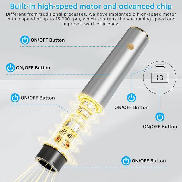 Real-Time Battery Indicator via Digital DisplayStay in control with the intuitive digital LCD screen located on the top of the device. This smart display shows the real-time battery level, so youll never be caught off guard in the middle of a sealing session. Designed for convenience, this feature makes the handheld vacuum experience smarter and more user-friendlyperfect for modern kitchens and on-the-go use.