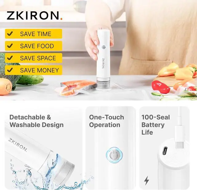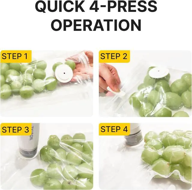 UPGRADED REUSABLE BAGS: Our food vacuum sealing machine handheld sealers include BPA-free bags with enhanced sealing strength. Use from -24°C to 100°C, compatible with dishwashers, refrigerators, and microwaves. Washable, reusable, and odor-free.
