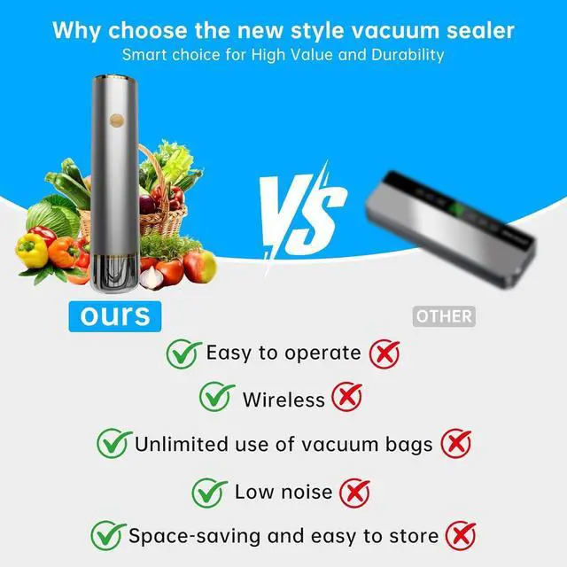 Extended Battery Life 2x Capacity for Longer UseOur vacuum sealer comes with a built-in high-capacity lithium battery that lasts twice as long as most competing models. Youll enjoy extended usage time on a single chargeideal for large batch sealing, camping, or travel. With superior energy efficiency, this vacuum sealer for food ensures powerful performance and reliability, anytime and anywhere.