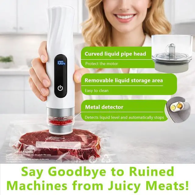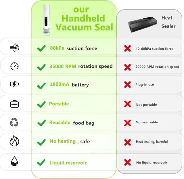 Rechargeable & Battery Display for Easy MonitoringBuilt-in 1800mAh rechargeable battery supports up to 120 minutes of continuous use and can seal up to 1500 bags per full charge. The clear LED battery display allows you to check remaining power at a glance. Cordless and lightweight for maximum convenience. Perfect for home kitchens, travel, camping, picnics and other on-the-go scenarios, enabling easy food sealing anytime, anywhere.