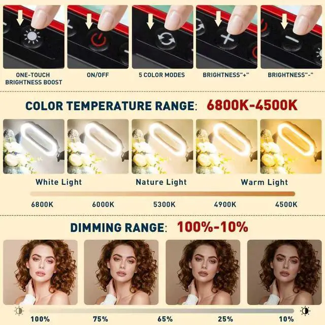 CONVENIENT HEAD SWITCH CONTROL: The integrated LED magnifying lamp provides five color modes and ten adjustable brightness levels, ensuring optimal illumination for different tasks and reducing eye strain. Its lighting control is located on the head, so it's super easy to adjust the light