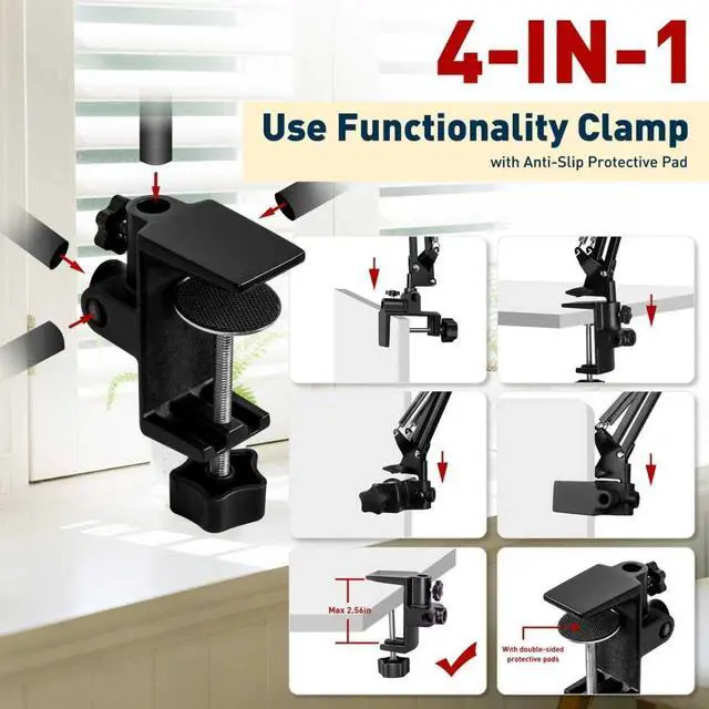 4-IN-1 VERSATILE ALUMINUM CLAMP: The strong metal clamp offers four mounting configurations through 0.47 -inch bracket thread holes. It accommodates workbenches or tables up to 2.56 -inch thick, while double-layer foam padding prevents surface damage. Whether mounting horizontally, vertically, sideways, or inverted, the desk magnifying glass with light stays firmly in place