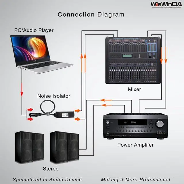 5. The Ground Loop Audio Noise Eliminator could work with amplifiers, speakers or mixers, with stable performance, high precision and good reliability. Let you eliminate car speakers / home stereo systems humming sound away and enjoy a perfect sound. Used for portable devices that have XLR audio outputs Home Stereo Speakers Amplifier Equalizer ect.