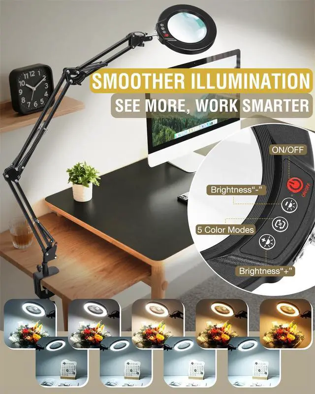 Practical Upgrade for Work & Hobby: The sturdy metal clamp opens up to 2.56 inches and includes a double-layer non-slip pad to protect your furniture. It attaches securely to tables, work bench, or desks, keeping your magnifying lamp firmly in place. A magnifying tool for crafters, jewelers, estheticians, collectors, and hobbyists. It also makes a thoughtful gift for seniors, artists, and anyone who enjoys detailed work.