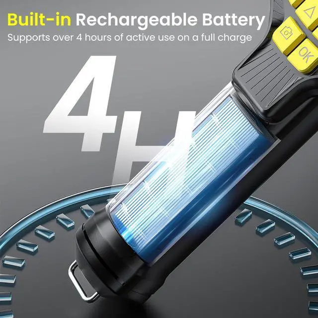 Extended Battery Life & Simple Plug-and-PlayTackle longer jobs with the built-in rechargeable battery, providing over 4 hours of continuous operation. Start immediately no WiFi, apps, or complex drivers required. The ergonomic design ensures comfort during extended use. Includes secure threaded alloy accessories (Hook & Magnet) for enhanced retrieval and inspection tasks.