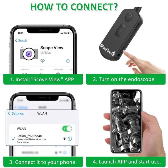 Wide Compatibility & IP68 Waterproof This snake camera can support Android smart phone (Android 4.4 above) and iPhone or iPad (above iOS 6.0 ) or