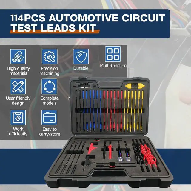Time-Saving And EfficientCircuit test lead kits assist technicians in quickly and accurately checking for automotive problems, When you need to check parts, you can directly connect to the back of the terminal to avoid damage to the circuit. If you need to check the current, you don't need to cut the wires, just connect the line to the circuit. Facilitates technicians to save time and increase efficiency.